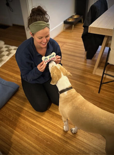 Taking my dog to the park, going to the gym, playing music, or cooking with my sister. I also foster dogs, so my days are filled with furry friends!